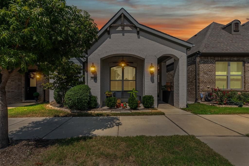Step inside to an inviting open-concept living area where soaring ceilings and plentiful natural light create a bright, spacious feel. At the center of the home, the stylish kitchen features sleek quartz countertops, a convenient breakfast bar, and premium stainless steel appliances. Plantation shutters throughout add both elegance and privacy. This single-family home offers three well-designed bedrooms and two modern bathrooms, each thoughtfully crafted for comfort and functionality. The private primary suite provides a peaceful retreat, complete with generous closet space and a beautifully finished en-suite bath. Decorative lighting throughout the home enhances its contemporary charm. The property also includes an alarm system with front door and rear garage cameras that can be transferred to the new owners. Outside, a low-maintenance side yard with artificial turf is ideal for relaxing or entertaining. The landscaped yard showcases a Redbud tree along with rose and sage bushes, while the HOA maintains the front yard for added convenience. Located in a family-friendly neighborhood, this home offers a low-maintenance lifestyle with easy access to the Cotton Belt Trail, the airport, and major routes across the DFW area.