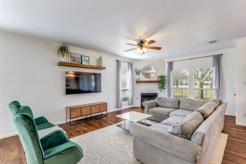 Located in the heart of Frisco, this beautifully updated single-story 4-bedroom home sits on a premium golf course lot, offering serene views and a bright, open atmosphere both inside and out. Large windows fill the home with natural light and showcase relaxing views of the green, while the spacious patio provides the perfect setting for outdoor entertaining or quiet evenings. Inside, the home features gorgeous flooring throughout, a light and inviting kitchen with granite countertops, and updated bathrooms. The functional layout includes a separate utility room, generous secondary bedrooms with large closets, and a spacious primary suite with dual closets. Extensive updates over the past several years provide both style and peace of mind. The kitchen and guest bathroom were remodeled, with additional enhancements including new cabinetry and the addition of a breakfast nook. Flooring has been upgraded throughout, including hardwoods in the guest bedrooms. Major system improvements include all new windows (2023), foundation repairs with transferable warranty (2023), new HVAC system (2024), and a new water heater (2022). Additional updates include a new backyard fence (2022), low-maintenance turf (2024), and new toilets (2025). Located in a friendly neighborhood and zoned to highly rated schools in the Frisco Independent School District, this home offers the perfect blend of location, updates, and golf course living.