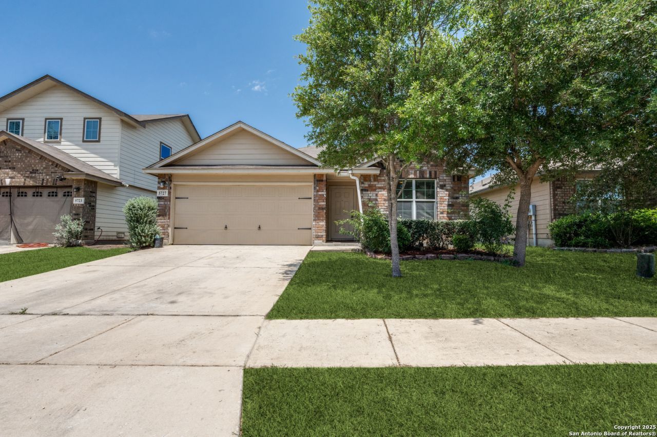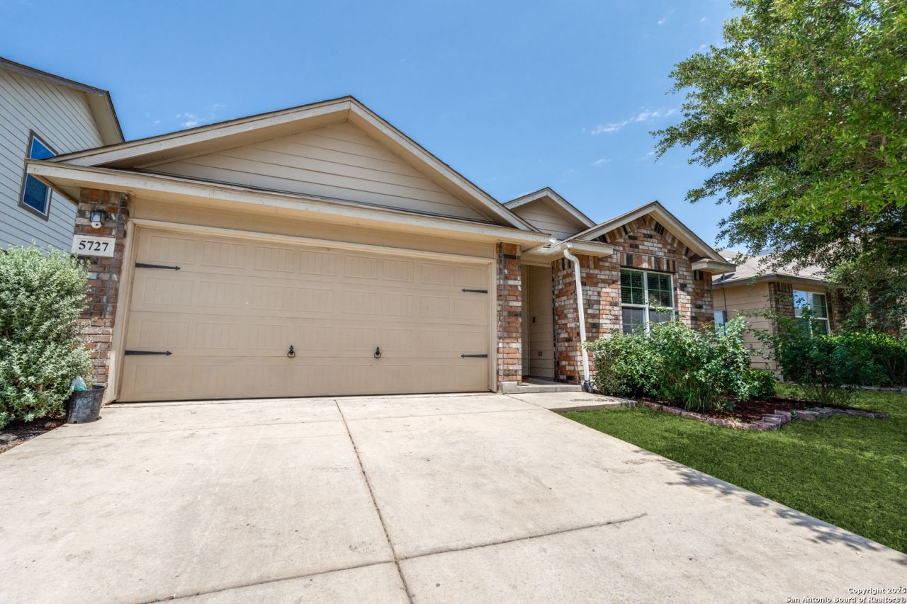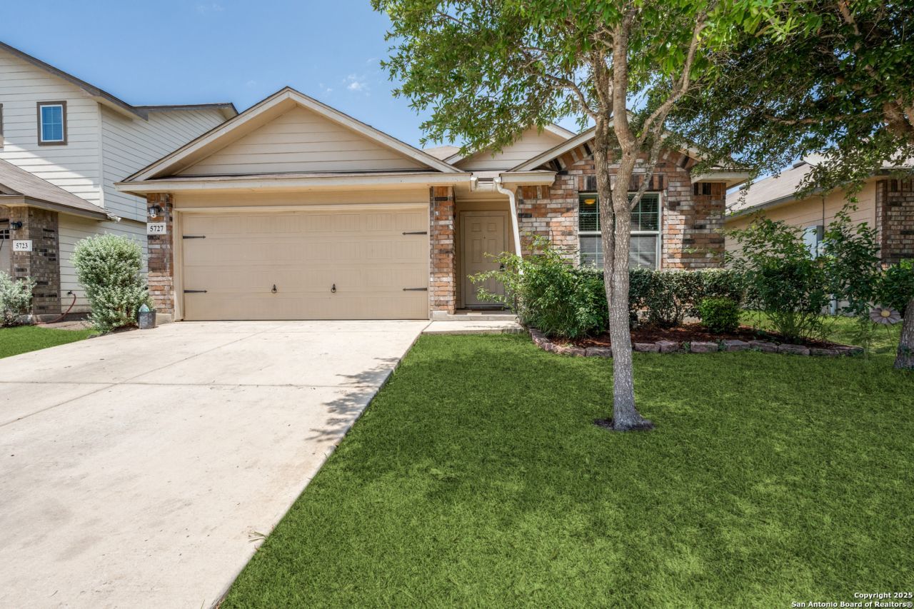 Welcome to 5727 Medina Farm, a beautifully maintained single-story home in a convenient San Antonio location! Built in 2014, this spacious residence offers over 1,700 square feet of comfortable living space with a classic brick front exterior and siding on three sides. The open floor plan seamlessly connects the island kitchen, dining area, and living room-perfect for entertaining or everyday living. The kitchen features ample cabinet space, a functional layout, and a charming decorators nook for added creativity. This home includes three bedrooms and two full bathrooms, along with a versatile front room ideal for a home office, craft space, workout area, or kids homework zone. The welcoming entryway provides extra space for storing shoes, umbrellas, and hats-making coming and going a breeze. Step outside to a private backyard with a covered patio, offering a great spot to relax, enjoy morning coffee, or host a weekend BBQ. A privacy fence enhances both comfort and security. Dont miss the opportunity to make this flexible, well-designed home your own!