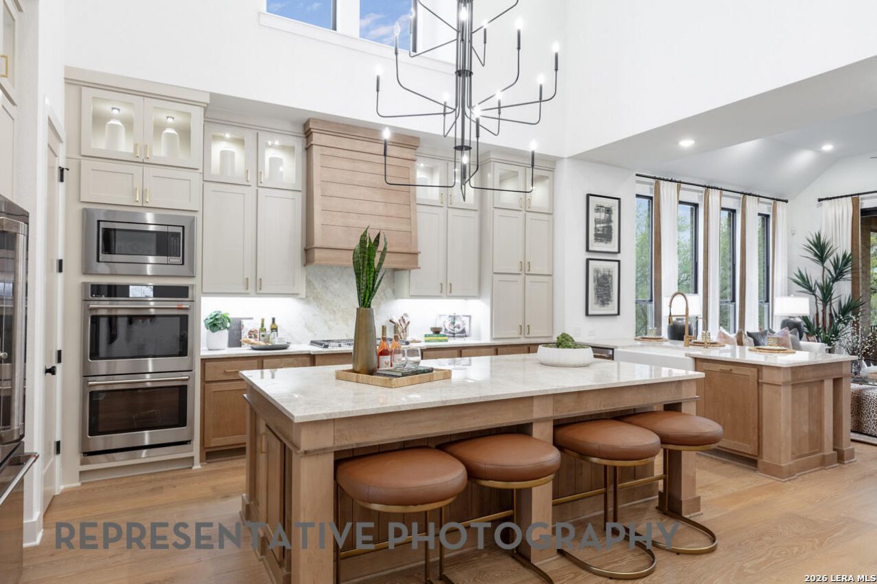 Awesome single-story home with island, peninsula, hutch and vaulted ceilings in the main area of this home. Stunning. The 218 is the hottest selling Highland Home in the state of Texas. This one checks off all boxes for the buyer looking for luxury living inside of Mayfair. No other single story floor plan in the community can compete with this one. Period. The kitchen is one of the best kitchens ever designed for a Highland Home because it includes the island, the peninsula and the hutch are all standard features for this home.