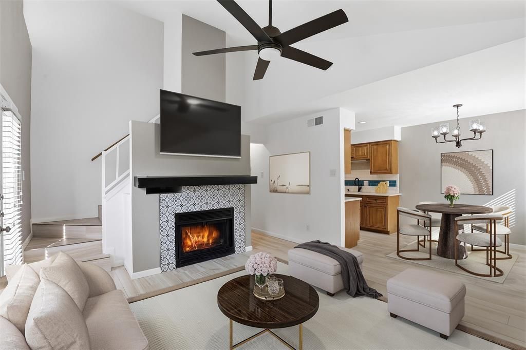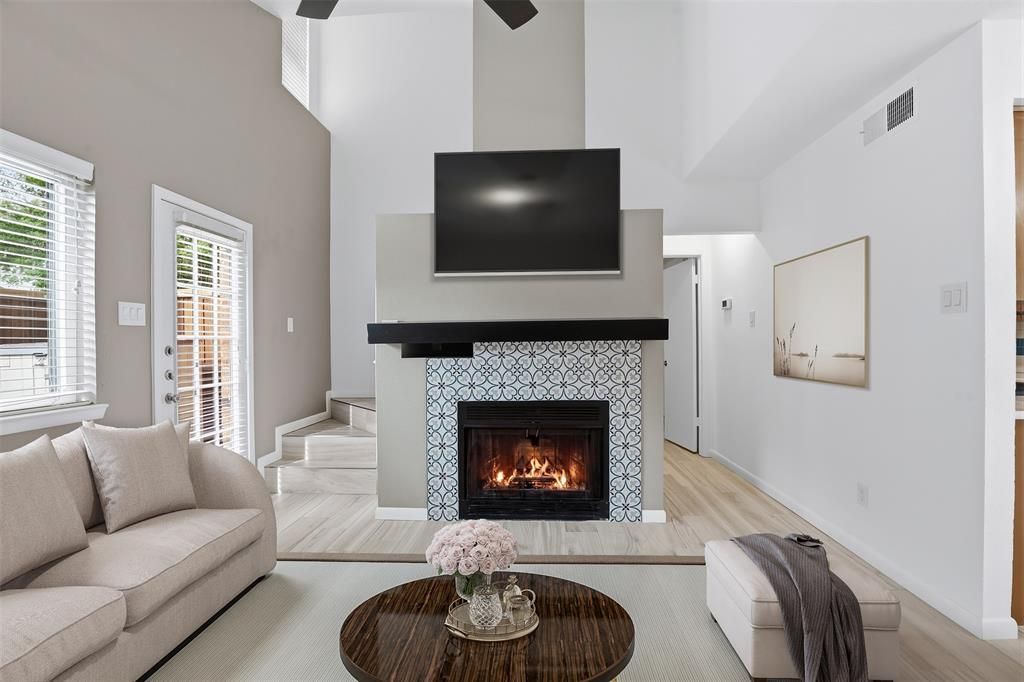 This beautifully remodeled 3-bedroom, 2-bath home in the gated Cedar Creek Townhomes offers stylish, move-in ready living in a prime location. Thoughtfully updated throughout, the home features stunning new ceramic flooring and baseboards, creating a fresh and cohesive feel.The inviting living room showcases vaulted ceilings and a cozy fireplace with a striking designer ceramic tile façade—perfect for relaxing or entertaining. The kitchen has been tastefully updated with quartzite countertops, a new backsplash, porcelain sink, and garbage disposal, blending function with modern elegance.The spacious primary suite is conveniently located on the main level and features two closets and a beautifully updated ensuite bath. Upstairs, two additional bedrooms are thoughtfully positioned in a split layout, offering privacy and flexibility. Both bathrooms have been fully remodeled with quartzite countertops, new bathtubs, and decorative tile finishes.Step outside to a private patio just off the living area, complete with new fencing and additional storage—ideal for outdoor enjoyment. The gated community provides added security, one reserved parking space, guest parking just steps away, well-maintained grounds, and a refreshing community pool.Ideally located near Trinity Trails, TCU, I-20, Chisholm Trail Parkway, and premier shopping and dining at Waterside and Clearfork, this home offers both comfort and convenience. A must-see!