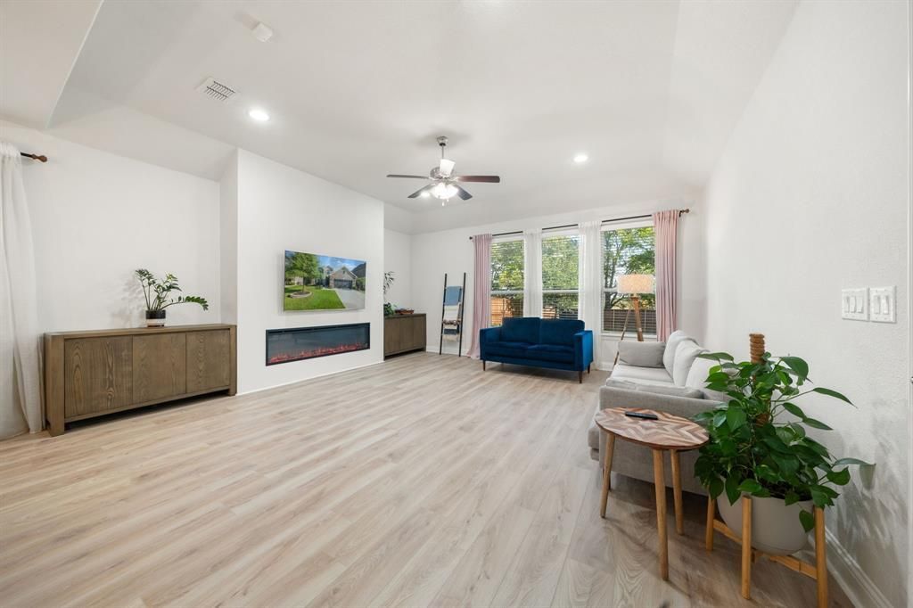 Welcome to this northwest-facing, single-owner custom home on a premium oversized lot with no rear neighbors in the highly sought-after Vineyards community of McKinney. Built by Impression Homes in 2018, this meticulously maintained home offers 2,610 sq ft, 3 bedrooms, 2.5 bathrooms, a dedicated office, and a spacious game room—perfect for everyday living and entertaining.Enjoy abundant natural light, an open-concept layout, and a seamless flow from the kitchen to the main living area. A brand-new custom electric fireplace with built-in cabinetry adds a modern focal point.The first floor features luxury vinyl flooring with a 30-year warranty, along with updated lighting in the kitchen and dining. Ceiling fans are installed in all bedrooms, the living room, and game room.The private first-floor primary suite includes a cozy reading nook—ideal for a nursery, workspace, or relaxation. Upstairs offers spacious secondary bedrooms and a versatile game room.Upgrades include solar panels (2023), HVAC serviced twice yearly, EV charging outlet, epoxy-coated garage floors with finished, painted walls, new roof (2019), and new gutters (2025).The premium lot backs to a tree line for added privacy and scenic views. Enjoy an extended concrete patio and a custom metal pergola built for durability and low maintenance.Zoned to top-rated Allen ISD with quick access to Highway 121 and Stacy Road—less than 10 minutes from Costco, Starbucks, The Hub, and Allen Premium Outlets. Community amenities include a pool and playground.A rare opportunity to own a well-maintained home in a prime location—with a potential FHA assumable loan at 2.65%.Schedule your showing today!