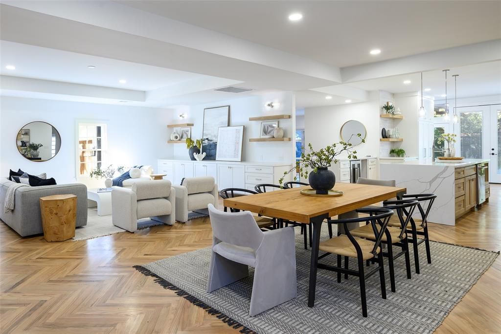 Fully reimagined and exquisitely finished, 6021 Northwood Road is a Preston Hollow jewel on a rare .405 acre homesite in the golden corridor. Mature trees and classic curb appeal frame painted brick and siding, stained wood garage doors, and twin French doors that open to a broad front porch. Inside, sunlight fills a connected plan designed for everyday living and entertaining. The chef kitchen shines with a waterfall quartz island, natural wood cabinetry, white shaker uppers, floating shelves, pendant lighting, and a brand new THOR appliance package with pro style range, vented hood, French door refrigerator, and integrated dishwasher, plus a pot filler and deep sink. Beautiful smaller plank herringbone floors and recessed lighting run through inviting living areas, including a cozy sitting room with fireplace and an expansive family room with custom built ins. Walls of windows and more French doors bring in leafy views throughout the day. The main level hosts three bedrooms and three and a half refreshed baths, highlighted by a serene primary suite with picture windows and room to lounge. A private fourth bedroom and fourth full bath sit above the garage, ideal for guests, office, or an au pair. Outside, the estate size lot delivers broad lawns beneath a mature canopy, an extended driveway for generous parking, and room to add a pool or future outdoor living. Set mid block on a prestigious, tree lined street, the home is minutes from top private schools, Preston Royal Village, NorthPark, and favorite Dallas dining. Move in ready and truly special, it pairs classic Dallas character with fresh modern luxury.