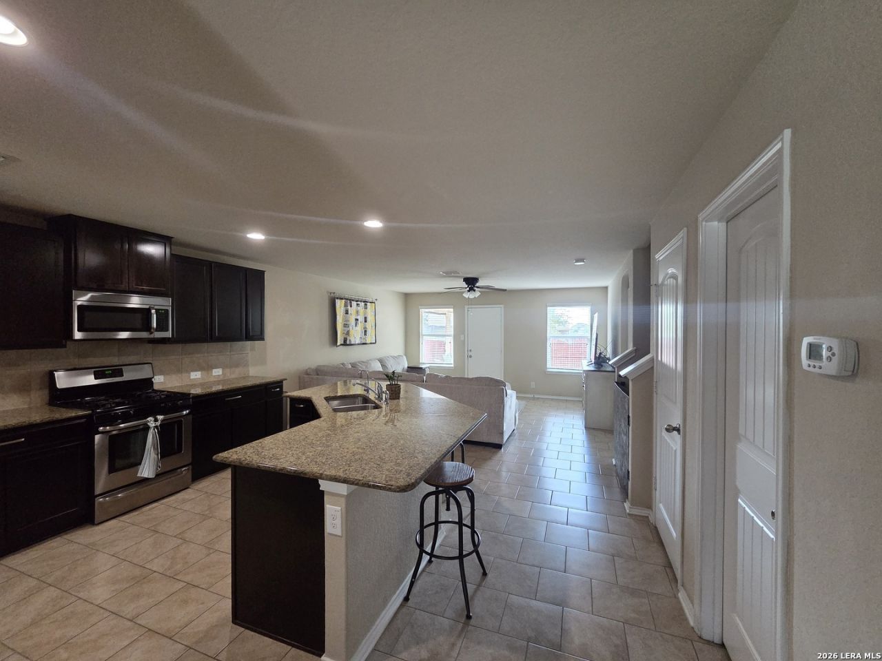 Rare 5 bedroom 3 and a half-bath home with flexible space, ideal for large families or multi-generational living-plus a standout opportunity with an assumable loan at a lower rate than todays market. This spacious two-story layout offers over 2600 sq ft with a highly functional design, including a private primary suite on the main level and multiple living areas that give everyone room to spread out. Upstairs includes 4 additional generously sized bedrooms, two full baths, and a large loft that creates the perfect second living area, game room, or workout setup. The open-concept kitchen flows seamlessly into the main living and dining areas, making everyday living and entertaining easy. Step outside to a covered patio, perfect for relaxing evenings or weekend gatherings with a backyard ready for your personal touch. Additional features include a water softener, reverse osmosis water filtration system, dual gas water heaters, durable ceramic tile flooring, a Hunter sprinkler system, and an in-wall pest control system. Located in an established community with convenient access to all three JBSA Bases-Fort Sam Houston, Lackland, & Randolph. You have quick access to major highways, shopping, and dining. This home offers both space and accessibility. Homes with this much space, flexibility, and financing potential are hard to find-schedule your showing today.