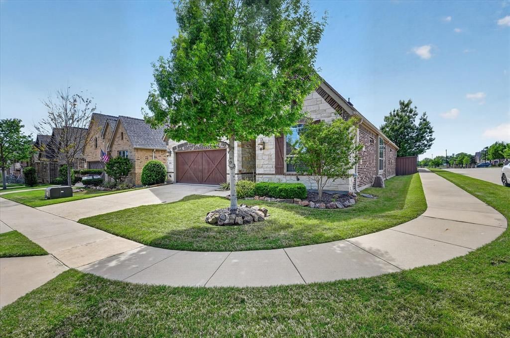 Step into a home where comfort, style, and ease come together beautifully. This 2-bedroom, 2.5-bath residence with a private study offers a light-filled, open layout enhanced by high ceilings and elegant arched entryways. Rich hand-scraped hardwood floors flow throughout the main living areas and study, creating a warm and inviting feel from the moment you enter. The spacious study, complete with French doors, ceiling fan, and generous storage, is perfect for a home office, hobbies, or welcoming guests. At the heart of the home, the chef’s kitchen features granite countertops, a gas cooktop, stainless steel appliances, a stylish tile backsplash, and a large island with breakfast bar seating—ideal for both everyday living and entertaining. The primary suite is a true retreat, offering a large sitting area, dual vanities with granite countertops, an oversized walk-in shower with dual shower heads, and a spacious walk-in closet. Outside, enjoy the covered patio perfect for morning coffee or relaxing evenings. Situated on a desirable corner lot tucked within the community, this home offers both privacy and connection. Additional features include a utility room with cabinetry and space for a freezer. The HOA provides front yard lawn care, giving you more time to enjoy life. Located in a vibrant 55+ active adult gated community, residents enjoy resort-style amenities including a pool, indoor fitness center, clubhouse with kitchen, and a full calendar of activities. With easy access to shopping, dining, and the greater Metroplex, this home offers the perfect balance of tranquility, convenience, and community. At least one resident must be 55 years of age or older.