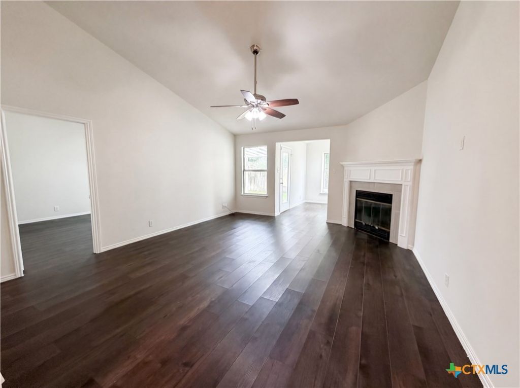 Experience recently updated comfort at 612 Pecos Dr, featuring fresh interior paint throughout. A warm fireplace creates a central focal point, and the primary bathroom provides double sinks. Outdoors, a covered patio extends to a fenced in backyard containing a convenient storage shed. This updated property combines comfort and utility for seamless living.