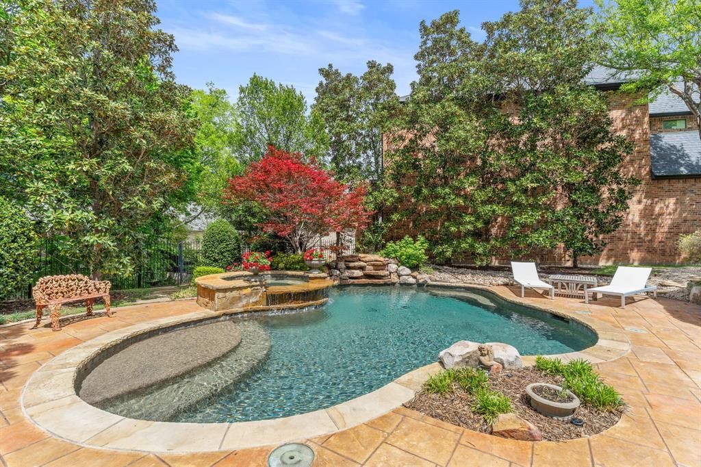 Exquisite French Custom home in prestigious Gated Kings Lake, Stonebridge Ranch, McKinney is beautifully updated. The home is poised on a premium greenbelt private lot. This extraordinary French inspired home exemplifies timeless European architecture, craftsmanship, and serene Texas luxury living. Surrounded by lush mature landscaping, the residence captures breathtaking views of the pool, spa, and greenbelt beyond. The grand family room impresses with vaulted beamed ceilings & soaring stone fireplace, offering a dramatic focal point and connection to the picturesque outdoor living space. Flooded with natural light, the interior is rich in architectural detail, from custom millwork and paneling to hardwood flooring that flows throughout the first level. The formal dining room is illuminated by a crystal chandelier, while the executive study features custom built-in shelving and paneled walls. The gourmet kitchen is open appointed with quartzite slab countertops, a marble split-face backsplash, commercial-grade Dacor 6-burner gas range, double ovens, built-in refrigerator, & butler’s pantry. The primary suite offers a tranquil retreat overlooking the backyard oasis. The primary bath is a work of art, showcasing marble slab countertops, an Empyrean Ice marble floor and shower, a freestanding soaking tub, and Kallista unlacquered brass fixtures, highlighted by exquisite Regina Andrew sconces and a Ian Fowler Belfair chandelier. Upstairs, discover renovated secondary baths and a spacious game room, the perfect setting for both recreation and relaxation. The Outdoor living space provides yet another place for entertaining with a stone fireplace. Located between two premier Stonebridge Ranch golf courses, residents of Kings Lake enjoy amenities including Stonebridge Lake access, beach club, tennis, pools, basketball, and miles of walking and biking trails. A rare opportunity to own a move in ready custom home where elegance, craftsmanship, and luxury lifestyle converge.