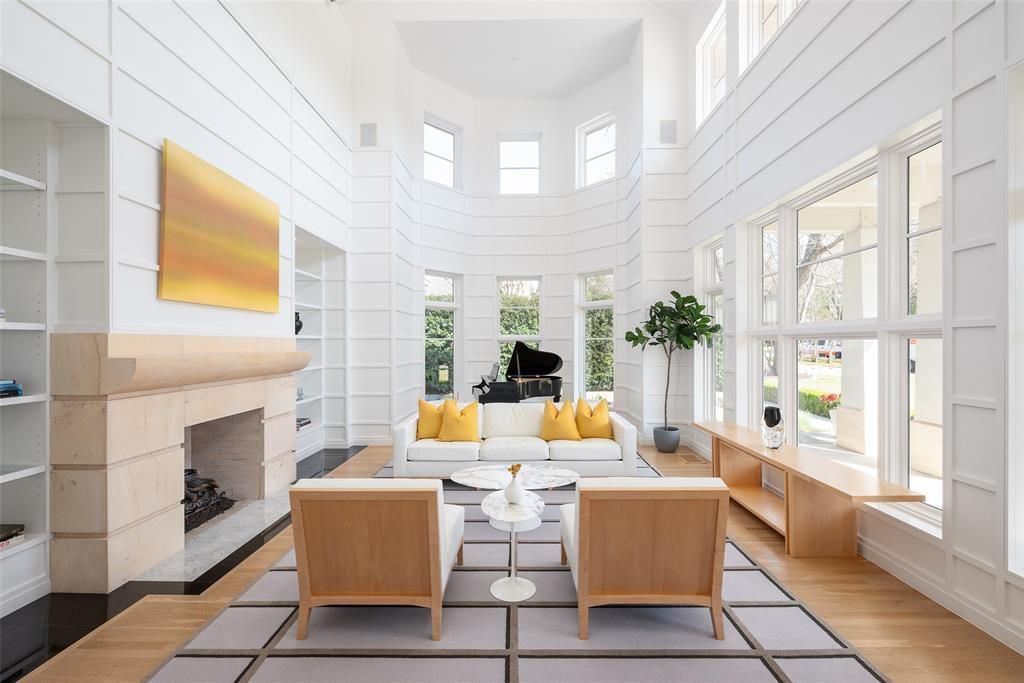 This innovative interpretation of the classic Craftsman home at 6215 Norway carries an air of the resort lifestyle of the Hamptons or Seaside, Florida. Chosen for the AIA Dallas Home Tour in 2023, it is one of only a handful of homes with a private access gate to the St. Mark’s campus. The convenience and privacy this location offers are truly exceptional. Designed by architect Michael Malone and built by Manning Snelling, the 6,886 square foot, 5 bedroom, 6.1 bathroom residence is set on an extra-deep 100 x 200 lot. Malone drew inspiration from C.F.A. Voysey, and Frank Lloyd Wright to create this timeless look. Thick tapered columns, and the large gabled front porch, create an immediate sense of invitation. A blue frieze line of tile at the top of the offers a memorable design element. An environmentally sound home, each major interior space has a corresponding exterior area, allowing for a continuous flow of light. A uniform set of finishes, including Carrera marble and white oak floors, is used throughout the house. Traditional and modern elements are beautifully balanced. Classic open living and dining rooms offer a unique twist, a grid pattern as a unifying design motif. The decorative grid paneling continues in the two-story family room, where a butler’s pantry and a wine room are tucked behind the open-plan kitchen. The primary wing ceiling extends the grid pattern in a streamlined industrial touch, with French doors opening to the pool. The principal bathroom is wrapped in marble with a large shower and a vessel tub. Upstairs are four generously sized ensuite bedrooms – two that offer incredible panoramic views onto St. Mark’s campus. A playroom and exercise room complete the upstairs. With 1,200 square feet of outdoor living space, featuring a covered patio with a fireplace and grill station, a large grassy area, and a pool and spa, this is an ideal environment for both daily living and entertaining. A 3-car garage with room for lifts completes the home.