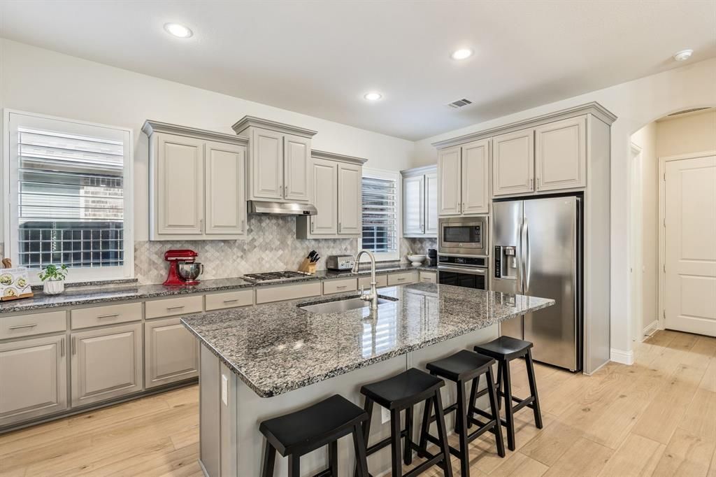 Located in the Berkshire community of Fort Worth Texas in Tarrant County and zoned to Northwest ISD, this 4 bedroom, 3 bathroom residence offers approximately 3,182 square feet of two story living built by K. Hovnanian Homes in 2016. Positioned near Highway 287, Blue Mound Road and Interstate 35W, Berkshire in Fort Worth provides convenient commuter access toward the Alliance Corridor and Downtown Fort Worth while remaining minutes from Alliance Town Center and Presidio Towne Crossing. Designed for open concept functionality and flexible gathering space, the floor plan connects the kitchen, dining and main living area to support everyday living and entertaining. The primary suite includes dual sinks, granite counters, separate shower and walk in closet space creating a private retreat within the home. Secondary bedrooms are arranged to balance shared areas with personal space. If you are searching for 4 bedroom homes in Fort Worth Texas within Northwest ISD near Alliance, this layout supports both daily functionality and long term value. Interior updates include premium wood look tile flooring installed in 2025, plantation shutters and tall ceilings that enhance natural light throughout the home. The upstairs game room offers a separate activity space with multiple windows and abundant natural light. The main living area is anchored by a gas fireplace with tile surround and decorative mantel while the kitchen features under cabinet lighting, generous cabinetry and an open layout designed for gatherings. Extensive storage includes large bedroom closets and additional hallway storage. Outdoor living extends to a covered patio with added pavers for grilling and entertaining. Community amenities in Berkshire include a pool, playground, clubhouse and walking trails. This property presents a balanced combination of layout versatility, Northwest ISD zoning and established Berkshire positioning within the north Fort Worth Texas market.