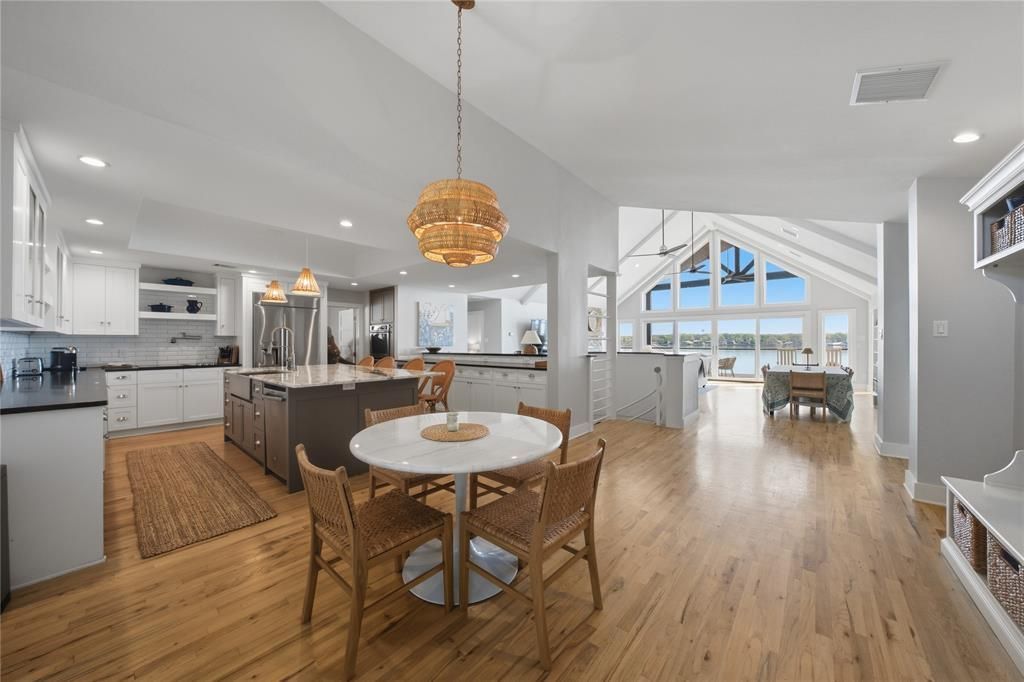 A rare opportunity awaits you in the coveted gated community of Enchanted Isles! This totally updated and remodeled lakefront home features 4 bedrooms and 3 full baths all with breathtaking views and lakeside access from every bedroom and living space. You will especially enjoy your morning coffee in the beautiful morning room off the primary bedroom, which was just completed. The open-concept floor plan, featuring floor-to-ceiling windows and doors facing east toward the lake boasts a gourmet kitchen, with a huge island for cooking and gathering. The family room is especially large to host many friends and family. The outdoor areas include an oversized deck off the family room, a lower-level covered patio, a 5-foot swim spa, and a 2023 boathouse that accommodates a boat and double jet ski lifts. The boathouse is on very deep water because you are on the outermost island. As you enter through the Enchanted Isles gate and drive across the two pine tree-lined causeways, you will know you have found your new ISLAND RETREAT!