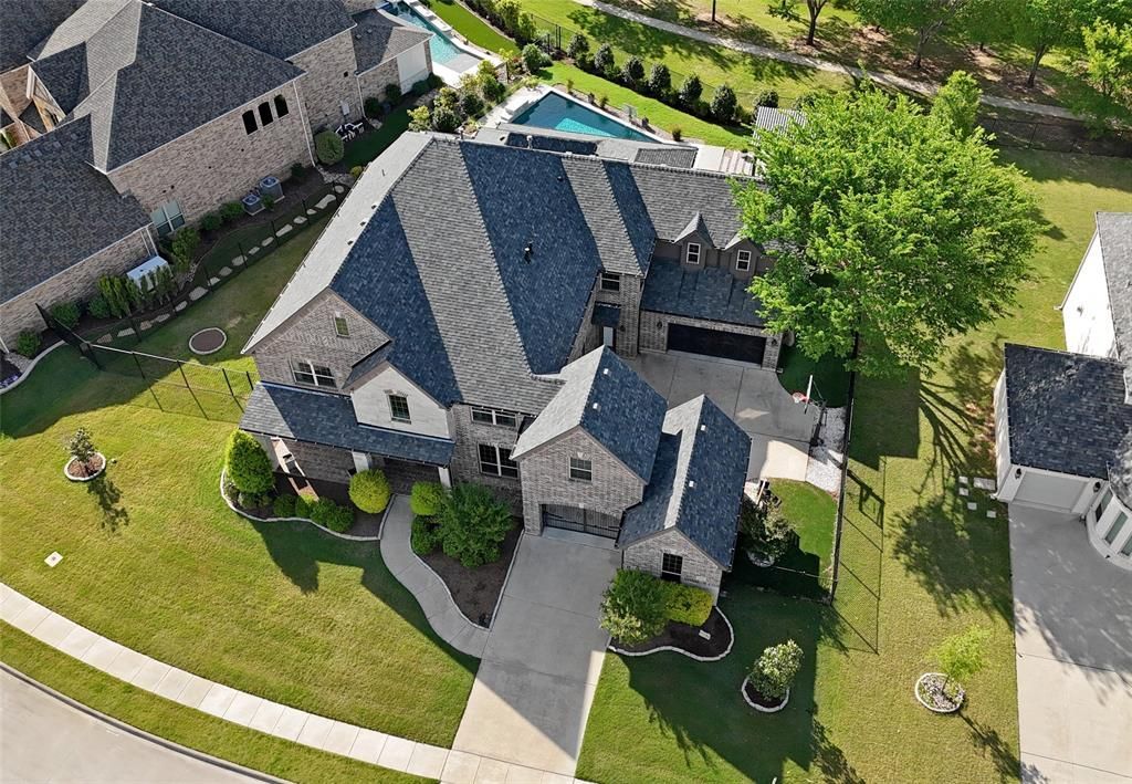 Situated within the prestigious Terracina community near the Shops of Highland Village, this beautifully designed home epitomizes sophisticated luxury and effortless elegance. Perfectly positioned on a premium lot backing to tranquil green space and scenic walking trails, the home offers both privacy and picturesque surroundings. Thoughtfully designed with impeccable attention to detail, the residence features 5 bedrooms and 6.5 baths, including a private first-floor guest suite ideal for guests or multi-generational living. Each generously proportioned bedroom is complemented by its own private bath, creating a true sense of comfort and exclusivity. A gated porte-cochère enhances the home’s impressive arrival, offering covered access and accommodating three-car parking, blending convenience with refined architectural appeal. At the heart of the home lies a designer chef’s kitchen, beautifully appointed with a 6-burner gas cooktop, premium KitchenAid appliances, double ovens, and butler’s pantry with wine fridge offering modern convenience. The upper level boasts a large game room, dedicated media room, and a stylish wet bar, creating the perfect setting for hosting and leisure. The primary retreat is a serene sanctuary, showcasing a spa-inspired bath and dual walk-in closets designed for elevated living. Outdoors, a resort-style backyard oasis awaits, complete with an expansive covered patio with remote screens, fully-equipped outdoor kitchen, and a sparkling pool and spa—perfect for both grand entertaining and private relaxation. Blending timeless design with modern luxury, this exceptional property offers an unparalleled lifestyle in one of the area’s most coveted enclaves.