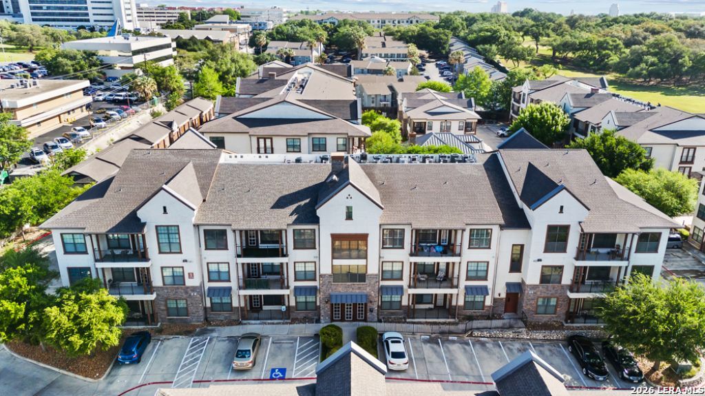 Step into refined living with this exceptional executive condominium at The Pinnacle at Oak Hills, now ready to welcome its next owner. Thoughtfully designed with both sophistication and versatility in mind, this elegant floor plan is ideal for a professional lifestyle or a roommate arrangement. Rich wood flooring flows seamlessly throughout the main living spaces, while soaring vaulted ceilings and expansive windows bathe the home in natural light-creating a serene and elevated retreat to unwind after a full day. The primary suite offers a private, attached office-perfect for quiet productivity-while the secondary bedroom is tucked into its own secluded wing, complete with a pocket door for added privacy and an adjacent full bath. Ideally situated near UT Health San Antonio, as well as an array of upscale dining and charming coffee spots, this residence blends convenience with lifestyle. Weekends invite leisure, with your own dedicated golf cart parking space and exclusive community access to the prestigious Oak Hills Golf Course (membership required). Additional features include two reserved, covered parking spaces beneath the building-providing both protection from the elements and effortless access just steps from the entrance. Unit #1302 at The Pinnacle at Oak Hills is more than a home-its an elevated living experience awaiting your arrival.
