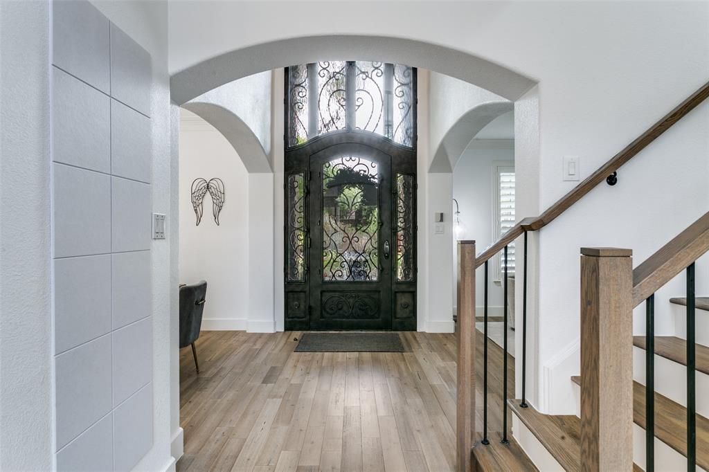Multiple offers received, highest and best due by Tuesday April 14 at 10AM. Step inside this stunning retreat, where modern elegance meets effortless comfort. Nestled in a vibrant, fun-filled neighborhood, this home is more than just a place to live—it’s a gateway to an incredible lifestyle. The community hosts exciting events throughout the year, bringing neighbors together and creating opportunities for connection and celebration. Talk about curb appeal, a front porch and stunning iron doors grace the entrance to the truly remarkable home. Inside, an open floor plan designed for seamless living and entertaining invites you to relax and connect in every space. Exquisite white oak wood flooring flows throughout the home—even up the staircase—adding warmth and sophistication at every turn. Designer lighting and plantation shutters are just a few of the amenities featured in this home.The kitchen is a chef’s dream, boasting undercabinet lighting, an abundance of workspace, gas cooktop, a beautiful island with coordinating quartz countertops, and a breakfast area with cozy window seating. Perfect for everything from quiet mornings to lively gatherings, it’s a space that truly stands out. Hosting is effortless with a built-in wet bar complete with an ice maker and wine chiller, ideal for crafting cocktails or enjoying an evening with friends. The main floor also features a private guest bedroom and full bath offering an ideal space for visitors or multigenerational living.Step outside to your personal oasis: a heated saltwater pool and spa that beckon year-round enjoyment. Whether you're soaking up the sun or enjoying a tranquil evening dip, this backyard is your sanctuary. This home is a true masterpiece, blending luxurious touches with livable design, all while being part of a community that feels like home. As an added bonus, Hackberry residents can apply for admission to Coppell ISD through an open limited enrollment period.