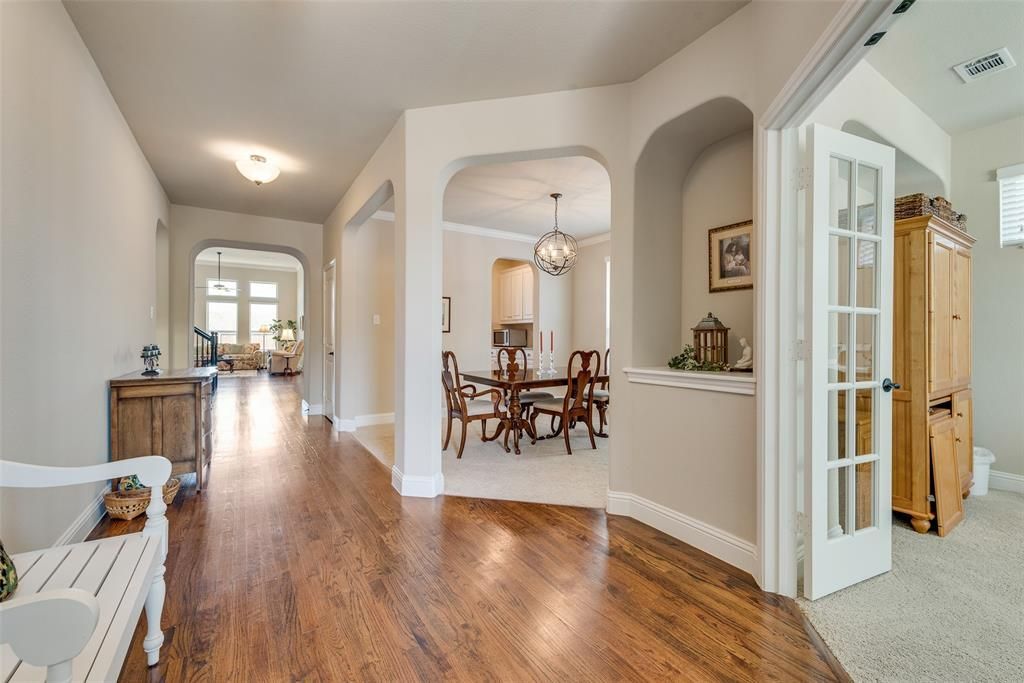 **Spacious Elegance in Fate, TX - A Perfect Blend of Style & Comfort**Discover this stunning 4-bedroom, 3.5-bath residence in the heart of Fate, TX. Meticulously crafted with an emphasis on both beauty and practicality, this home offers an inviting atmosphere for all who enter. Boasting a generous layout, it beautifully accommodates all modern lifestyle needs while offering unique touches that set it apart.Step inside to gleaming, solid oak floors that guide you through the expansive open living areas, seamlessly connecting the living room, kitchen, and dining spaces. The chef's kitchen is an entertainer's delight, featuring sleek stainless steel appliances, expansive granite countertops, a large island, and ample cabinetry for all storage needs. This culinary haven ensures preparation and presentation with elegance.Retreat to the private sanctuary of the primary suite, where you'll find the perfect escape. The ensuite bathroom is a spa-like treat with dual vanities, a soaking tub, a separate glass-encased shower, and a spacious walk-in closet. Each additional bedroom has been crafted with care, providing generous space and comfort, perfectly served by beautifully appointed bathrooms.Outside, the serene setting continues. The property’s exterior showcases charming brickwork and is enveloped by professional landscaping and stone walkways, offering an aesthetic appeal that complements the home’s serene surroundings. A private gate connects the backyard to greenspace, perfect for recreational use. Space abounds in the 3-car garage (tandem on one side), providing ample room for vehicles and additional storage.Located in a community known for its engaging lifestyle and friendly atmosphere, this property is poised to enrich every aspect of living.Explore the possibilities this exceptional residence holds.