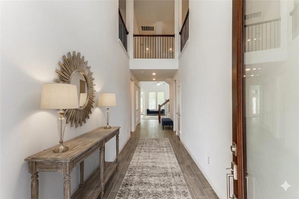 This beautiful home features an open floor plan and sits on a quiet greenbelt lot with no back neighbors. The modern kitchen is a highlight, offering bright quartz countertops, a large island for seating, and white cabinets. On the main floor, you will find two bedrooms and two full bathrooms, which is perfect for guests. The living room feels huge thanks to high vaulted ceilings and a cozy fireplace. Upstairs, there is plenty of space for fun with both a private media room and a large game room. With stylish tile floors and lots of natural light, this home is move-in ready and perfect for entertaining.