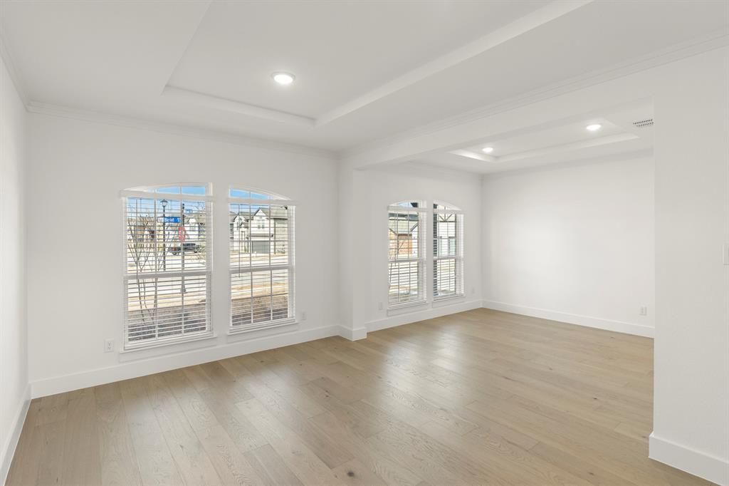 MLS# 21139224 - Built by First Texas Homes - Ready Now! ~ Located in the sought after master - planned community of Woodcreek. Experience luxury living in this impressive 5-bedroom, 4-bath Brentwood floorplan by First Texas Homes, set on an oversized corner lot in Rockwall ISD. The executive home welcomes you with a stunning elevation with a covered front porch and a 3- car garage. Enter into two-story foyer and a soaring 20-foot ceiling in the family room, highlighted by a dramatic curved staircase and a Juliette balcony. The gourmet kitchen features a Butler’s pantry and a spacious island, perfect for entertaining. Enjoy a private master suite with a spa-like bath, a versatile study that could also be a sixth bedroom, game room, media room with a wet bar, and a covered back patio. With 4,296 sq ft, this home is a must-see!