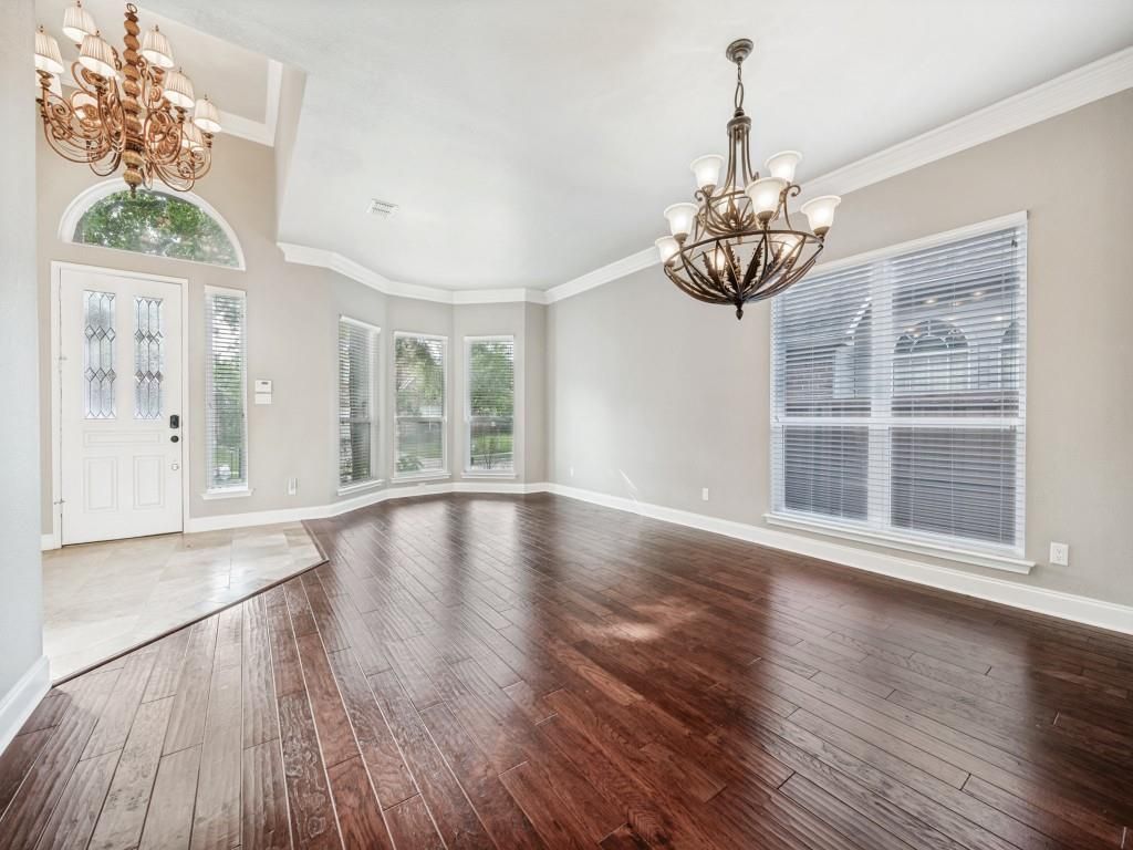 Welcome to 8605 Wellington Point, a thoughtfully designed single-story home in the heart of Valley Ranch, where natural light, architectural detail, and livable space come together effortlessly.From the moment you enter, you’ll notice the elevated ceilings, arched windows, and rich hardwood flooring that give the main living areas a warm, open feel. The front living space offers flexibility for a sitting room, office, or formal dining, while the main living area flows seamlessly into the kitchen—creating a layout that feels both connected and comfortable.The kitchen is well-appointed with granite countertops, a center island, and generous cabinetry, all positioned to stay engaged with the living space. It’s practical without sacrificing style.The primary suite is set apart for privacy and features a spacious bedroom, dual vanities, a soaking tub, separate shower, and a large walk-in closet. Secondary bedrooms are well-proportioned and tucked away from the main living areas.Out back, the space is intentionally low-maintenance, with a private deck and patio area that’s ideal for relaxing or entertaining without the upkeep.Located on a quiet interior lot in an established Valley Ranch neighborhood, this home offers convenient access to major highways, dining, and shopping—making everyday living easy without giving up a sense of neighborhood.