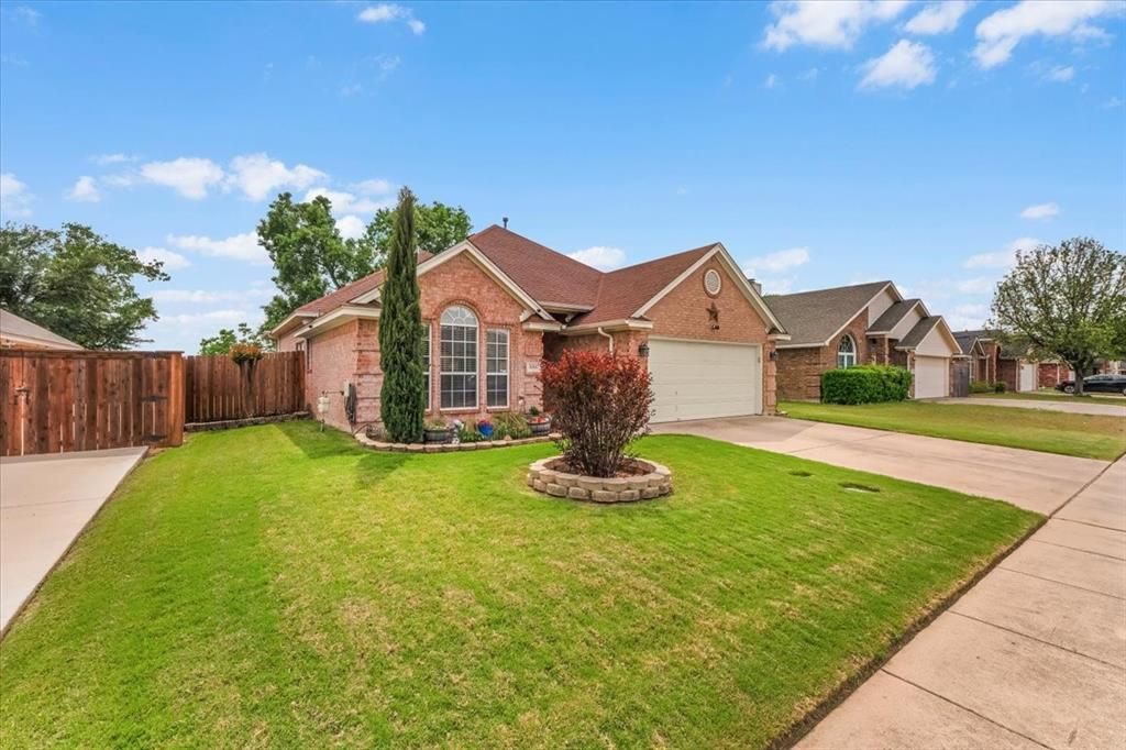 Move-in ready 1-story, 3-bedroom, 2-bath home on a lot overlooking a greenbelt! Located just down the street from River Trails Park with a playground and walking trails, and within walking distance to highly rated HEB Elementary.Seller has completed tons of updates including fresh paint, tile, and stainless steel appliances. The split floorplan is perfect for entertaining with an open-concept layout, spacious eat-in kitchen with pantry, and a great room featuring vaulted ceilings, an elegant fireplace, and direct access to a covered back patio with natural slate tile. Wood laminate flooring throughout adds warmth while remaining low maintenance.The primary suite offers abundant natural light, built-in shelving, a walk-in closet, and a spacious ensuite bath with separate shower and tub. Convenient access to I-820 makes commuting easy.Don’t miss the opportunity to own a well-maintained home in a prime location with great outdoor access and everyday convenience!