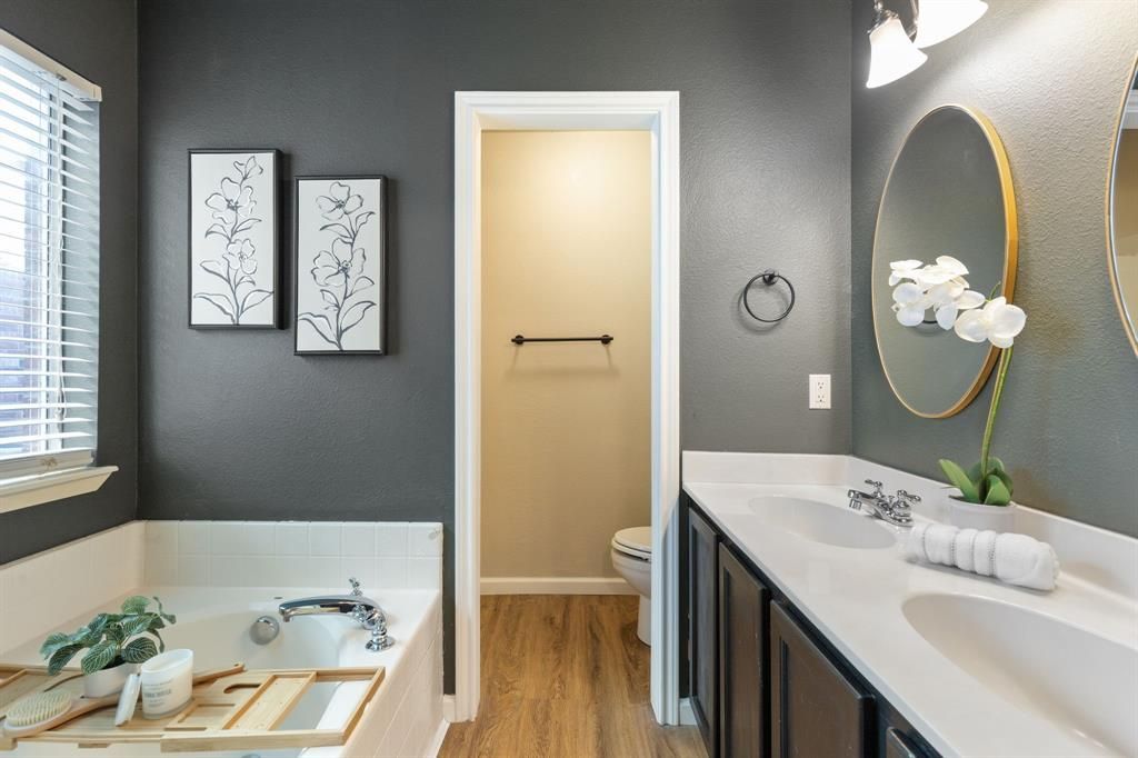 Beautifully updated move in ready home with open concept layout and modern finishes in Cross Oak Ranch with access to pools parks trails and top community amenities.Charming and move in ready home featuring 3 bedrooms 2 full baths and an open concept floor plan designed for everyday living and entertaining. This well maintained home offers abundant natural light and luxury vinyl plank flooring throughout creating a clean modern feel buyers are looking for.The spacious living room flows seamlessly into the kitchen and dining area with breakfast bar eat in kitchen island ample cabinet storage and updated appliances perfect for buyers searching for an open floor plan with functional layout.The private primary suite features dual sinks garden tub separate shower and walk in closet while secondary bedrooms offer flexibility for guests home office or additional living space.Step outside to enjoy a covered patio private backyard and interior lot location ideal for relaxing or entertaining.Recent updates include new flooring throughout 2022 fresh interior paint 2022 new AC unit 2024 new dishwasher 2024 new baseboards 2025 and new fence 2025 providing peace of mind and strong value.Located in a master planned community with access to pools parks playgrounds greenbelt walking trails and stocked fishing ponds. Conveniently situated near US 380 with quick access to shopping dining and future commercial development including HEB and major retail.If you are searching for a move in ready home open concept layout updated finishes large backyard and strong community amenities this is a must see.